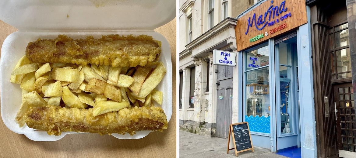 Indulge in delicious fish and chips at Marina Fish and Chips, located in Glasgow. Our takeaway offers mouth-watering menu options including pizza and sausages, all at great prices. With a focus on taste and customer satisfaction, our cozy decor and fast delivery will leave you feeling happy. Visit us at 416 Duke St or call +44 141 551 8199 to order now!