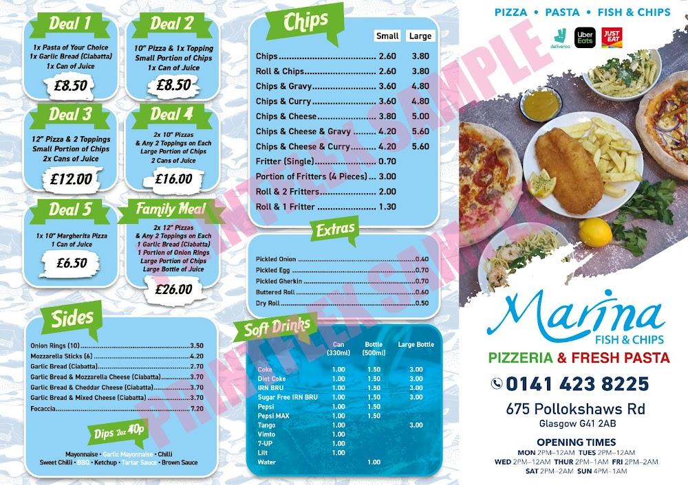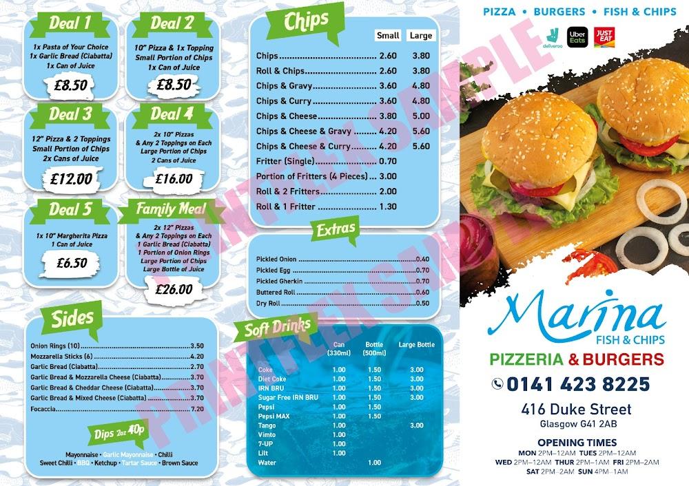 Nestled on Duke Street in the bustling city of Glasgow, Marina Fish and Chips stands out as a local favorite. With easy access and free street parking, it attracts both locals and students looking for a delicious meal. The charming interior is smarter than your typical chippy, featuring clean menus and a welcoming vibe.